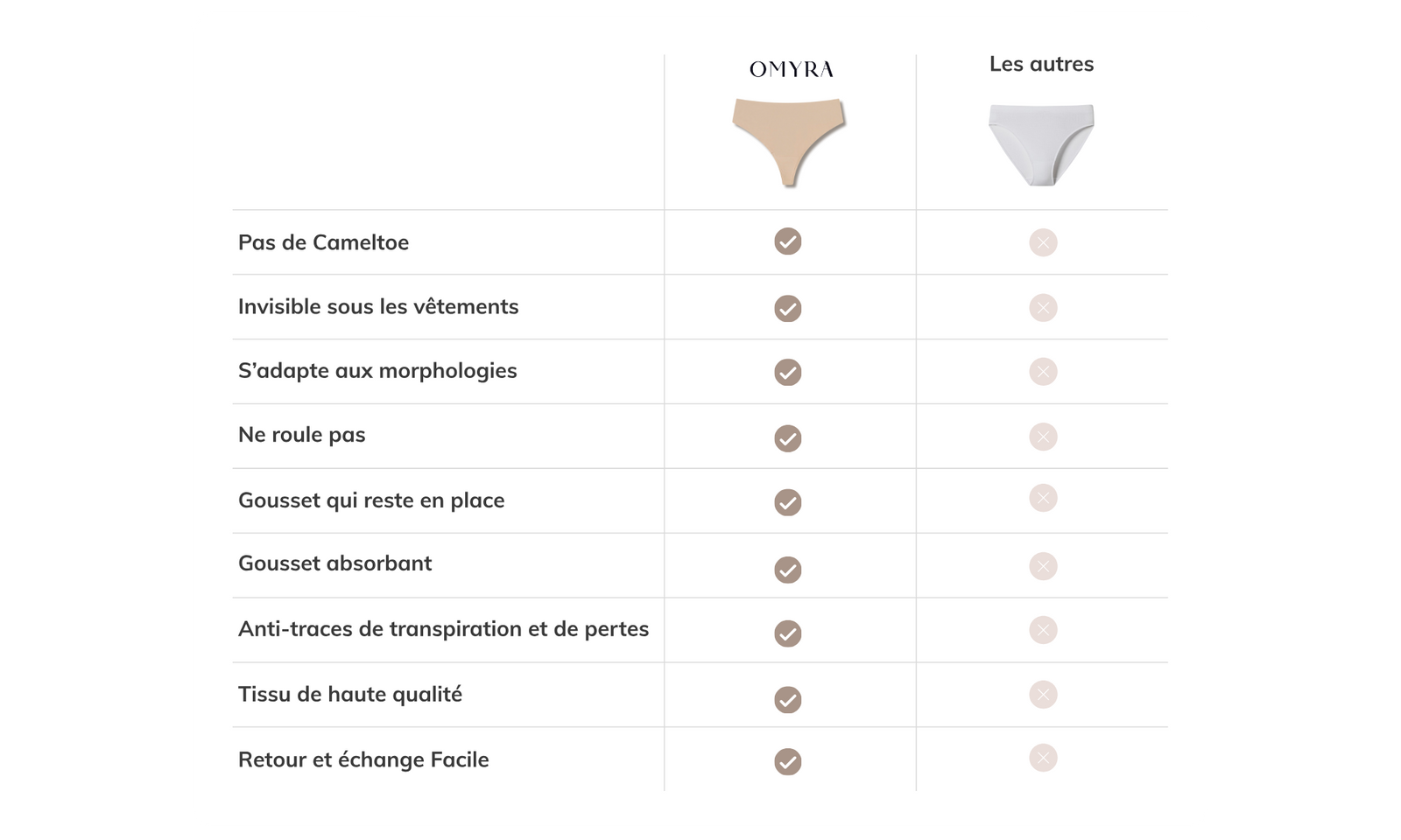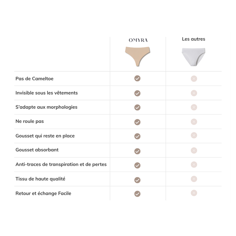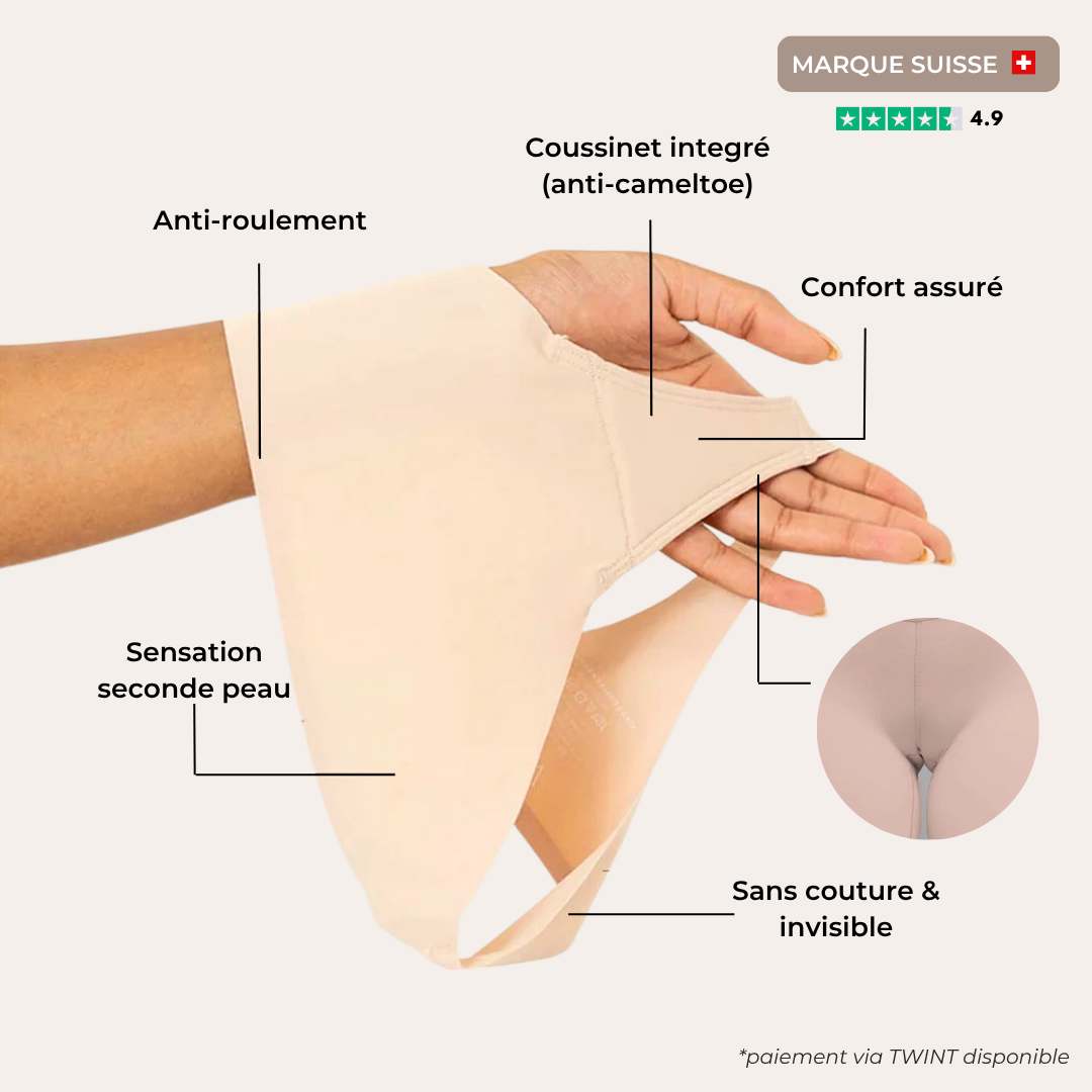 Un design pensé pour bloquer le camel toe, pour une tranquillité totale sous toutes vos tenues.